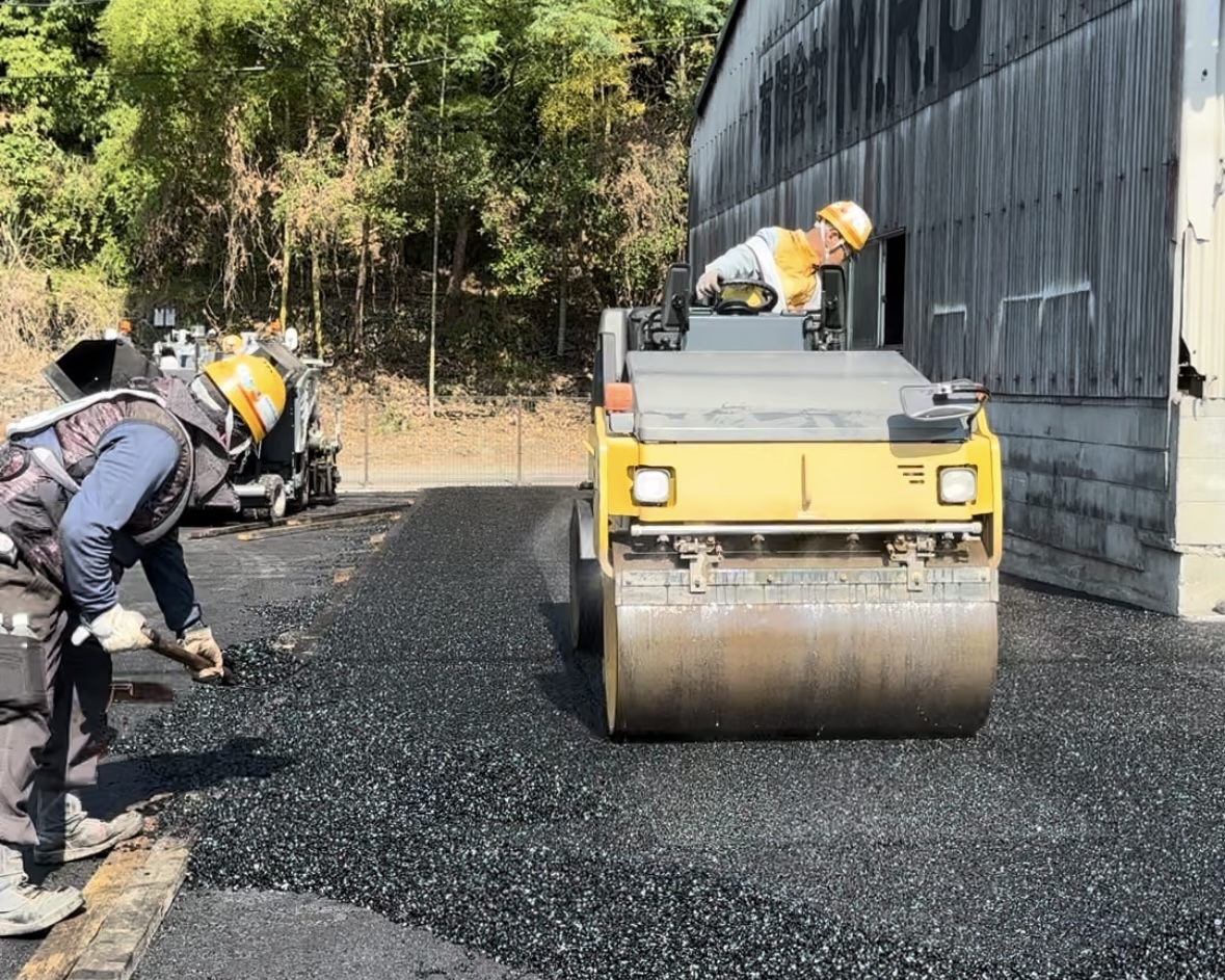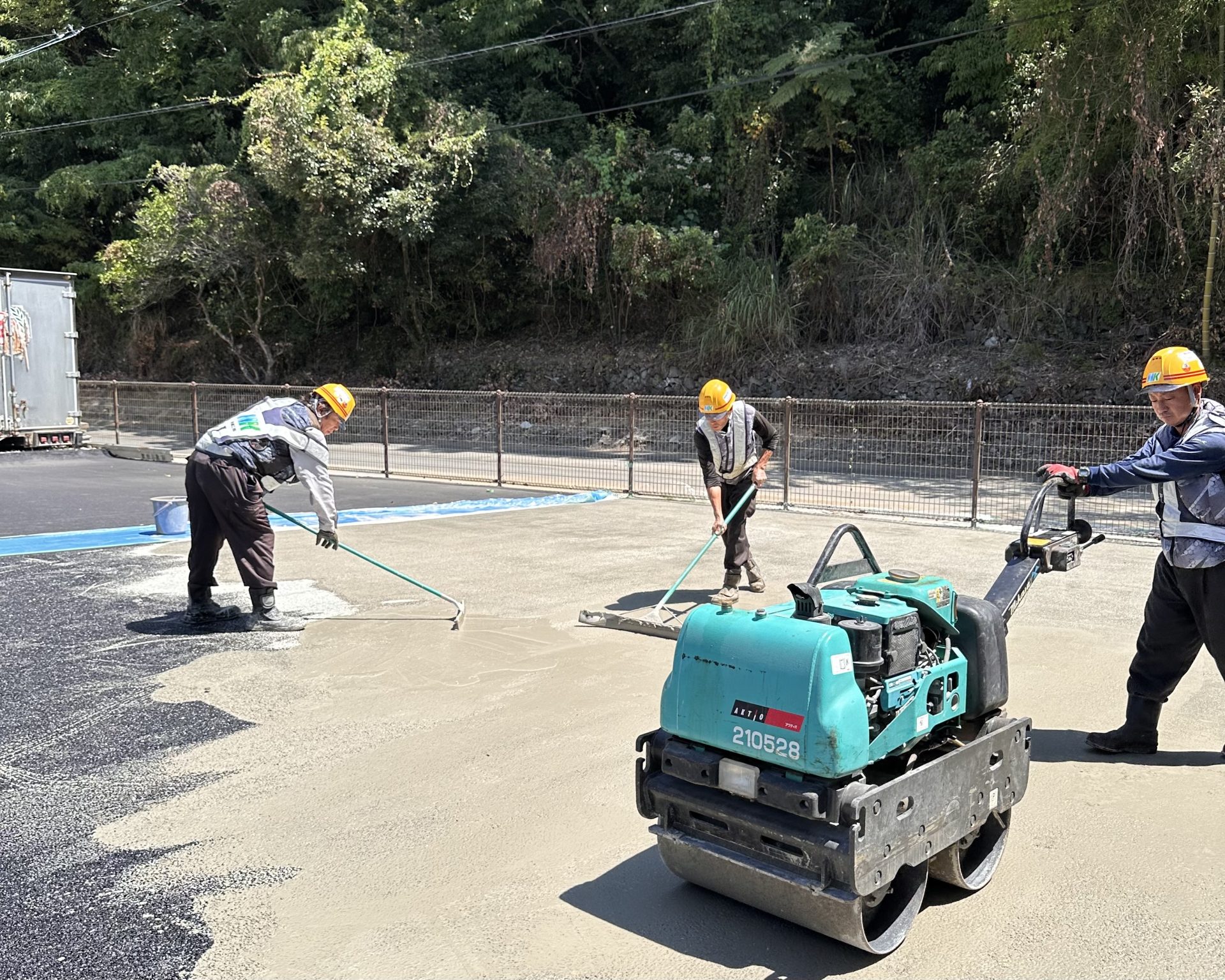 宇和島市にある自動車整備会社様の塗装ブース前を舗装させていただきました。