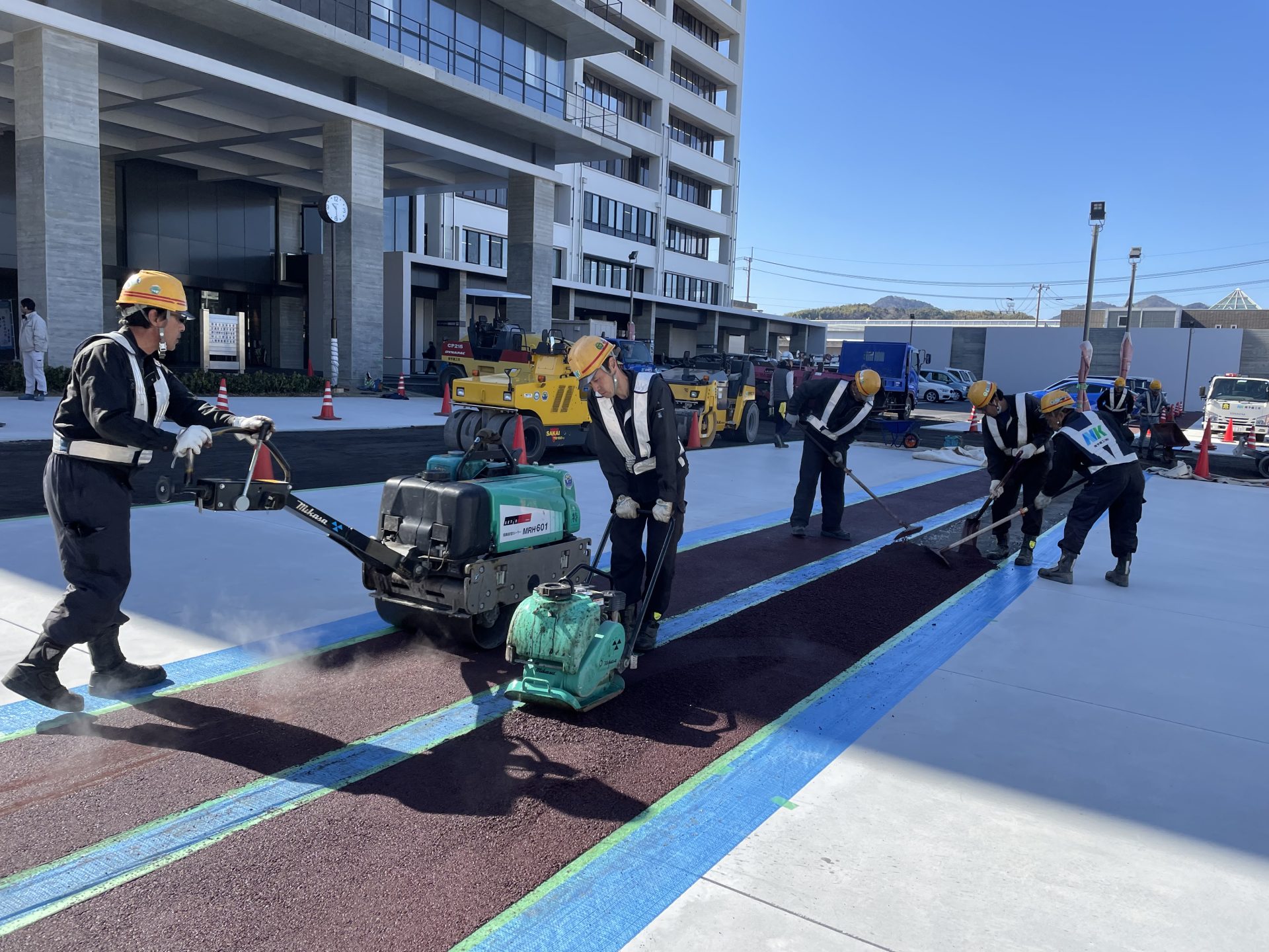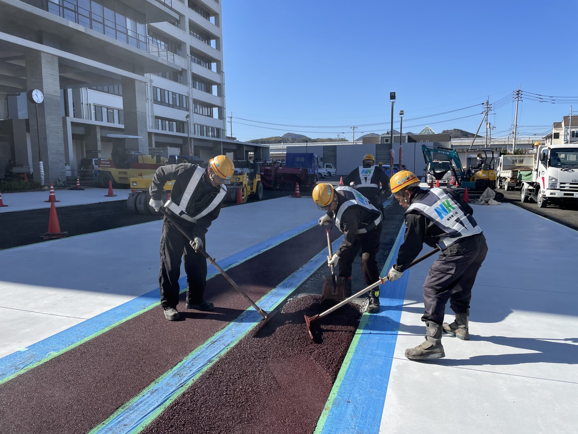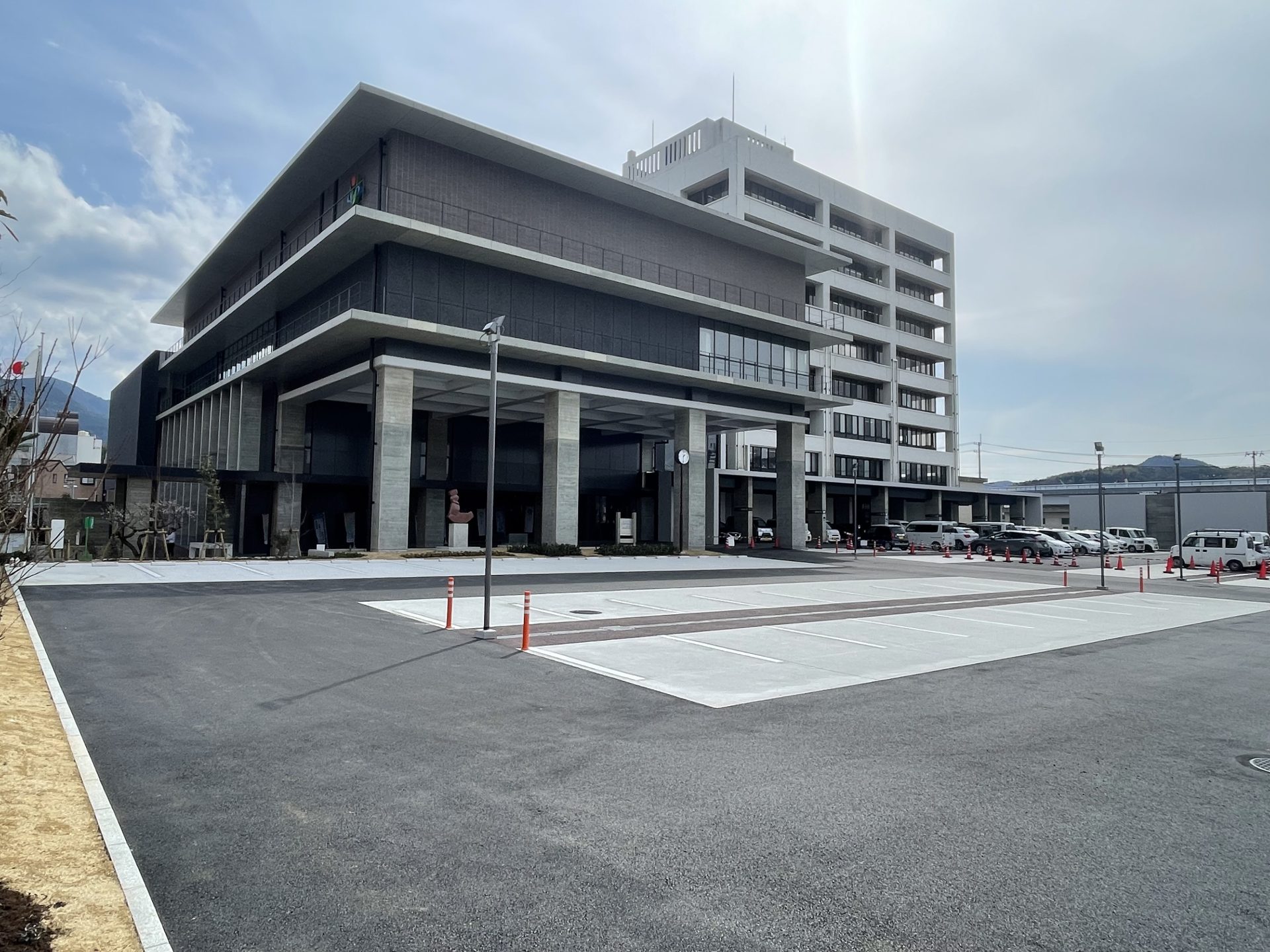 #アスファルト舗装#駐車場 宇和島市役所新庁舎新築工事 2023年2月 宇和島市役所新庁舎の新設駐車場を舗装しました。 景観を重視したカラー舗装や、一般駐車場の舗装を行いました。 宇和島市の窓口を快適にご利用いただければ幸いです。 一覧に戻る